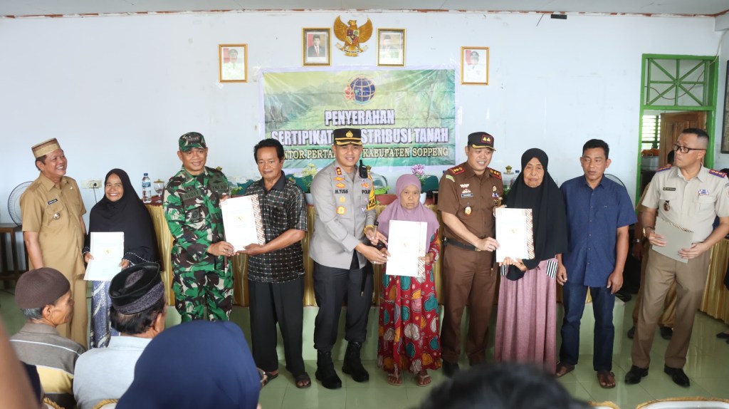 Pada kesempatan yang sama,Kapolres Soppeng AKBP H.Muhammad Yusuf Usman memberikan sertifikat tanah kepada masyarkat Desa Paroto.