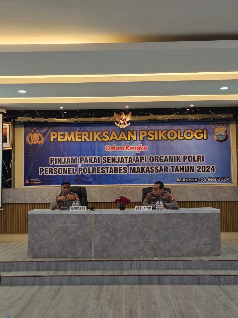 Bagian Psikologi Biro SDM Polda Sulawesi Selatan melaksanakan kegiatan pemeriksaan Psikologi dalam rangka Pinjam Pakai Senpi Organik Polri, Pemeriksaan Psikologi Berkala dan Mapping Psikologi kepada Personil Polrestabes Makassar.