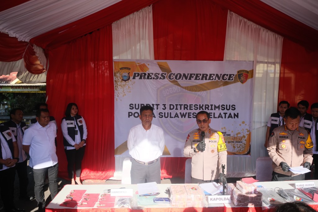 Kapolda Sulsel Irjen Pol.Andi Rian R.Djayadi, S.I.K.,M.H.didampongi Kabid Humas Polda Sulsel Kombes Pol Didi Supranoto, S.I.K., M.H. , bersama Dirreskrimsus Polda Sulsel Kombes Pol Helmi Kwarta Kusuma S.I.K.,M.H. menyampaikan Press Release pengungkapan kasus tindak Pidana Korupsi Pemberian fasilitas kredit oleh Bank Mandiri SME (Small Medium Enterprise/Usaha Kecil Menengah) Makassar Kartini kepada koperasi PT. Eastern Pearl Flour Mils (EPFM) yang berlangsung pada tahun 2018 sampai dengan tahun 2019.