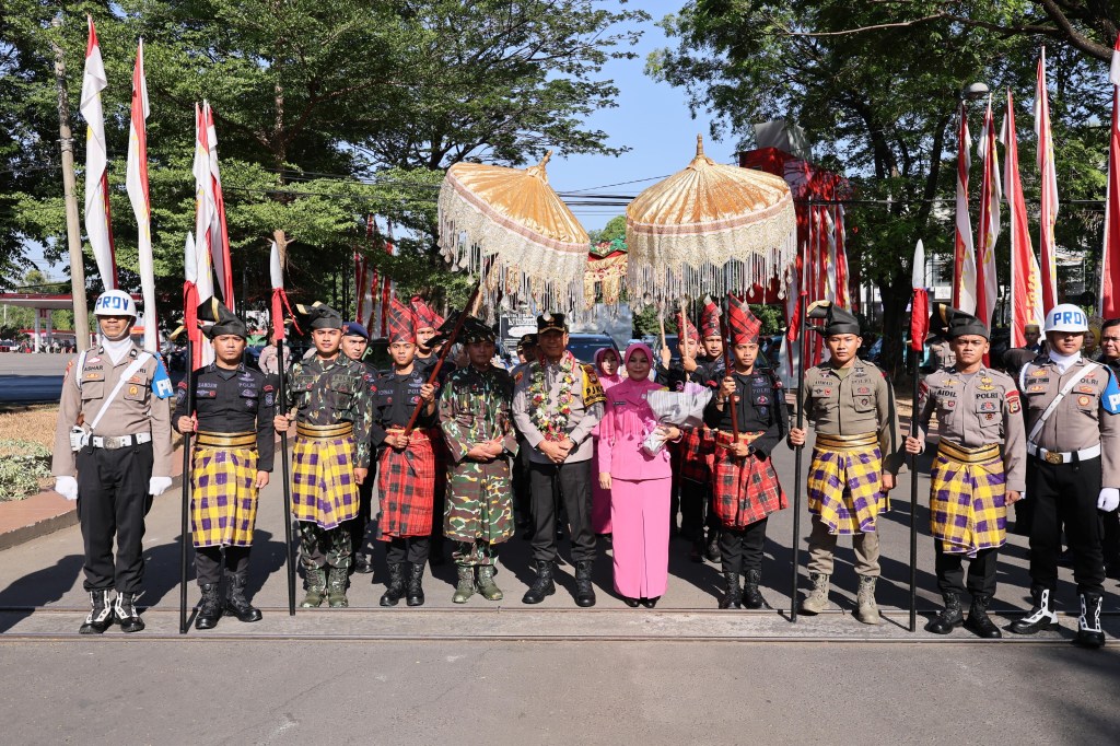 Kapolda Sulsel Irjen Pol. Yudhiawan S.H., S.I.K., M.H., M.Si beserta Istri kemudian menyapa jajaran personil Polda Sulsel yang berdiri berjejer menyambutnya