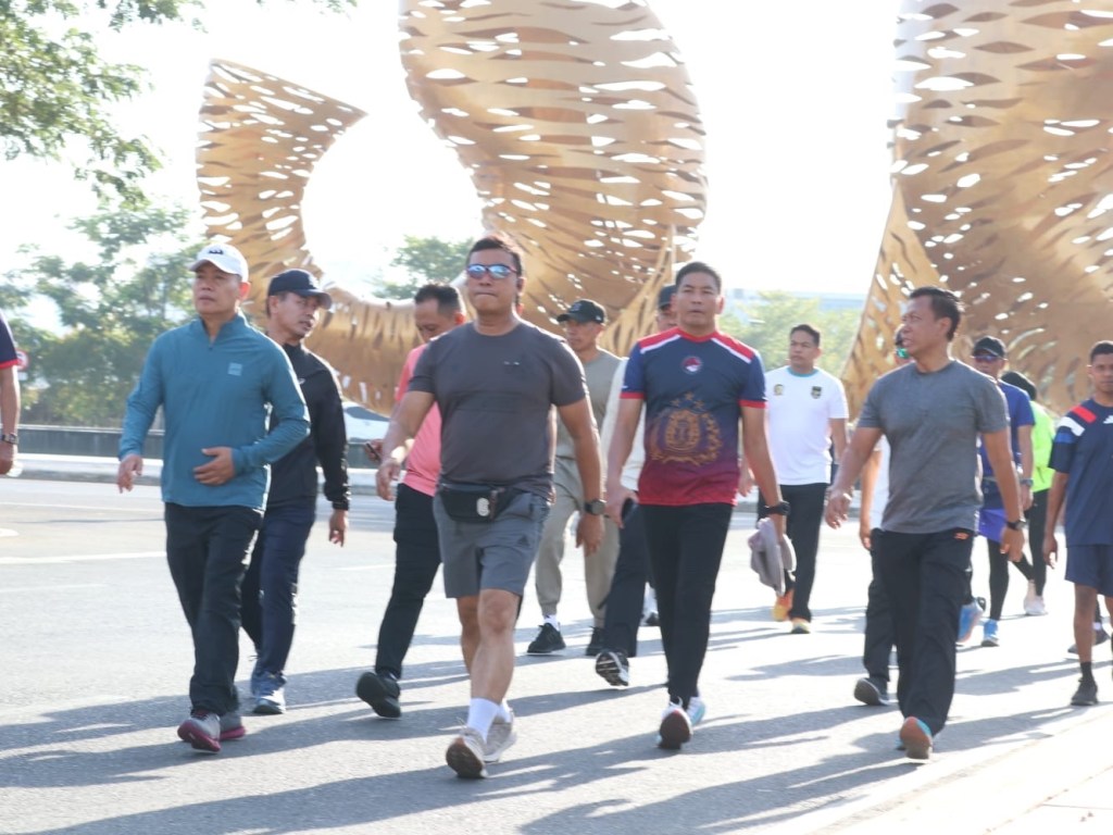 Kapolda Sulawesi Selatan, Irjen Pol. Yudhiawan S.H., S.I.K., M.H., M.Si., bersama dai kondang Ustadz Das’ad Latif dan sejumlah pejabat utama Polda Sulsel, menggelar kegiatan jalan santai di kawasan Centre Point of Indonesia (CPI) Makassar, Sabtu pagi. Kegiatan ini dimulai dari Anjungan Pantai Losari dan berakhir di The Icon Café, CPI, Makassar, (12/10/24).