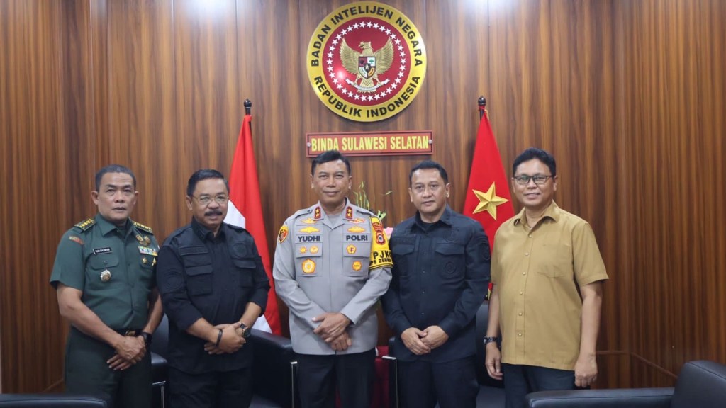 Kapolda Sulawesi Selatan Irjen Pol. Yudhiawan S.H., S.I.K., M.H., M.Si., didampingi Pejabat Utama Polda Sulsel melaksanakan kunjungan silaturahmi ke Kantor Kepala Badan Intelijen Daerah (Kabinda) Sulsel di Jalan Hertasning, Kota Makassar. Kamis (17/10/24). Acara ini berlangsung pada pukul 10.00 WITA dan bertujuan untuk memperkuat sinergitas antara kedua institusi dalam menjaga stabilitas keamanan dan ketertiban masyarakat (kamtibmas) di wilayah Sulawesi Selatan.
