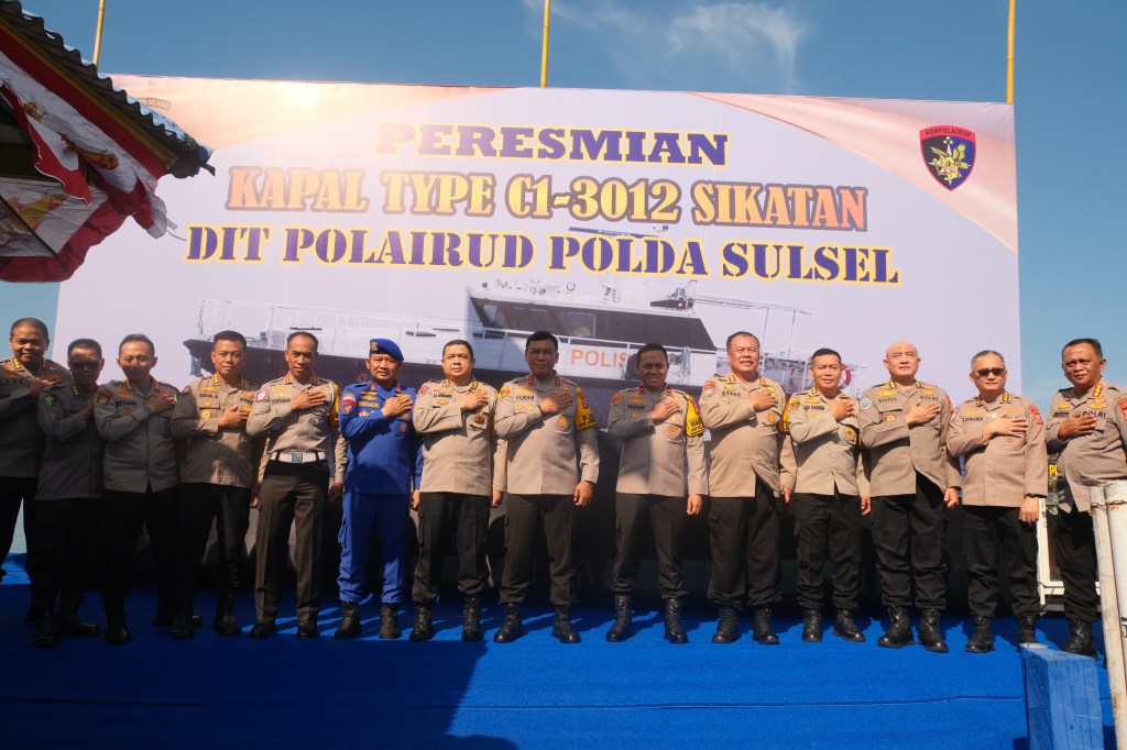 Kapolda Sulawesi Selatan, Irjen Pol. Yudhiawan S.H., S.I.K., M.H., M.Si., meresmikan Kapal Patroli C1-3012 Sikatan dalam sebuah upacara yang dilaksanakan di Dermaga Mako Direktorat Kepolisian Perairan dan Udara (Ditpolairud) Polda Sulsel, Selasa (22/10/24). Kegiatan tersebut turut dihadiri Wakapolda Sulsel, Brigjen Pol Nasri, S.I.K., M.H., serta para pejabat utama Polda Sulsel.