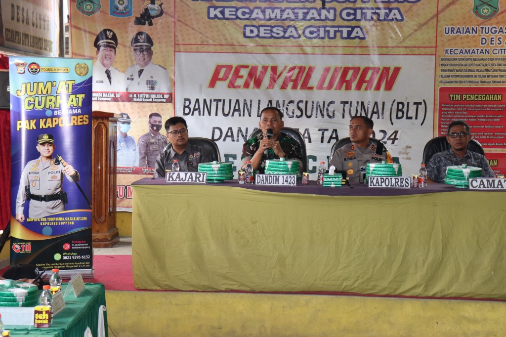 Dalam kesempatan tersebut, Dandim 1423 Soppeng, LETKOL INF REINHARD HAPOSAN MANURUNG, S.Pd, Menyampaikan kepada masyarakat khususnya warga Desa Citta untuk tetap menjaga situasi kamtibmas menjelang pilkada Kab. Soppeng tanpa perlu adanya kegaduhan yang terjadi
