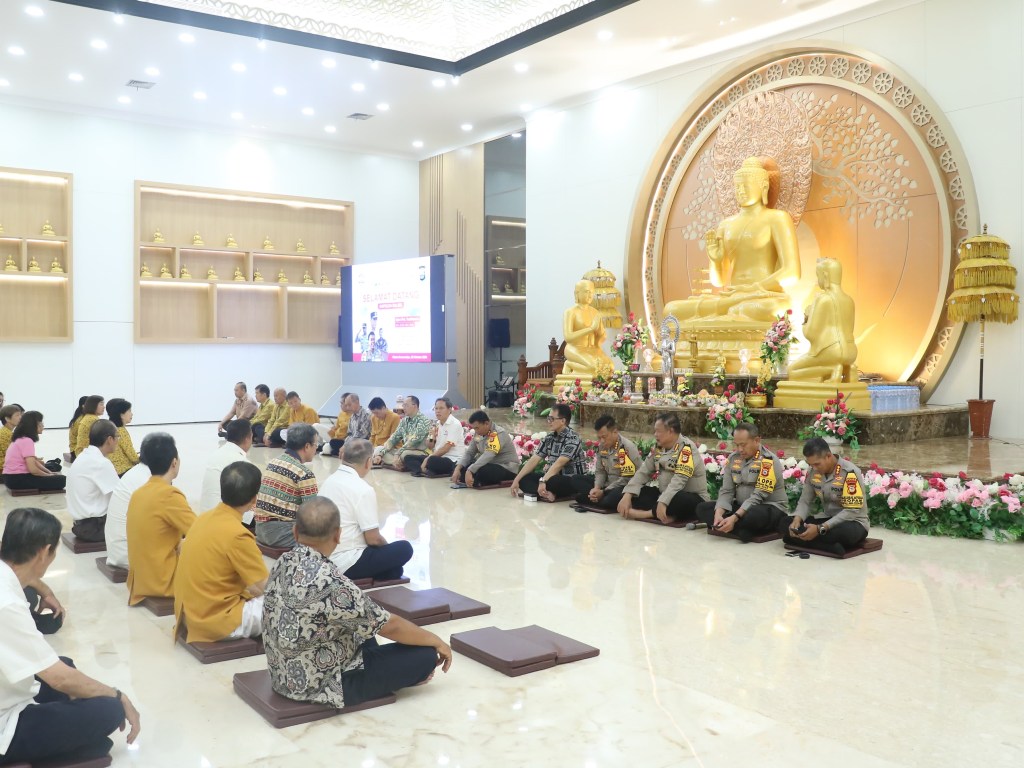Kepala Kepolisian Daerah Sulawesi Selatan (Kapolda Sulsel), Irjen Pol. Yudhiawan, S.H., S.I.K., M.H., M.Si., didampingi Pejabat Utama Polda Sulsel melakukan kunjungan silaturahmi ke Vihara Dhamasa pada, Jumat (25/10/24).