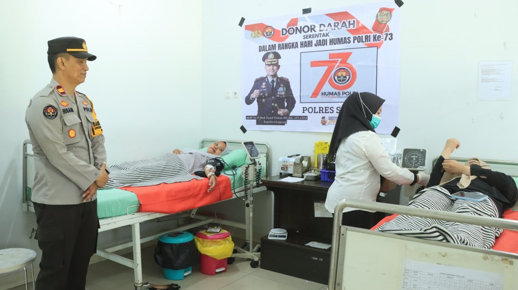 Si Humas Polres Soppeng Menggelar giat Donor Darah dalam Rangka Hari Jadi Humas Polri ke-73 tahun 2024 dengan Tema “Humas Polri Presisi Menuju Indonesia Maju” bertempat di UTD RSUD Latemmamala Soppeng ,Rabu 30 Oktober 2024.
