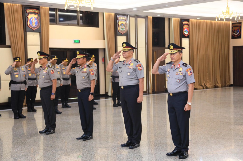 Jakarta – Kapolri Jenderal Listyo Sigit Prabowo memimpin upacara korps raport kenaikan pangkat 4 perwira tinggi (pati) dan perwira menengh (pamen) Polri di Rupattama Mabes Polri, Jakarta, hari ini.