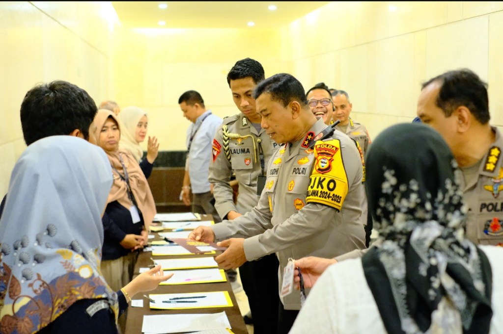 Dalam rangka memastikan keamanan dan ketertiban selama berlangsungnya debat kedua calon Gubernur dan Wakil Gubernur Sulawesi Selatan, Kepala Kepolisian Daerah Sulawesi Selatan, Irjen Pol. Yudhiawan, S.H., S.I.K., M.H., M.Si., bersama Wakapolda Sulsel, Brigjen Pol. Nasri, S.I.K., M.H., meninjau secara langsung kesiapan personel pengamanan di Hotel Claro Makassar, Minggu (10/11/2024).