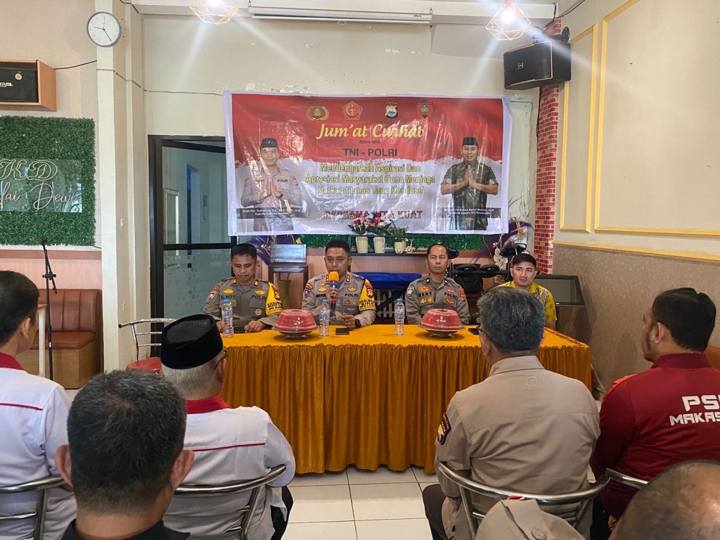 Gowa, — Jumat curhat kali ini dilaksanakan di Di Kedai Dewi Jalan Agus Salim Kec. Sombaopu, Wilkum Polres Gowa, Jumat (27/12/2024).