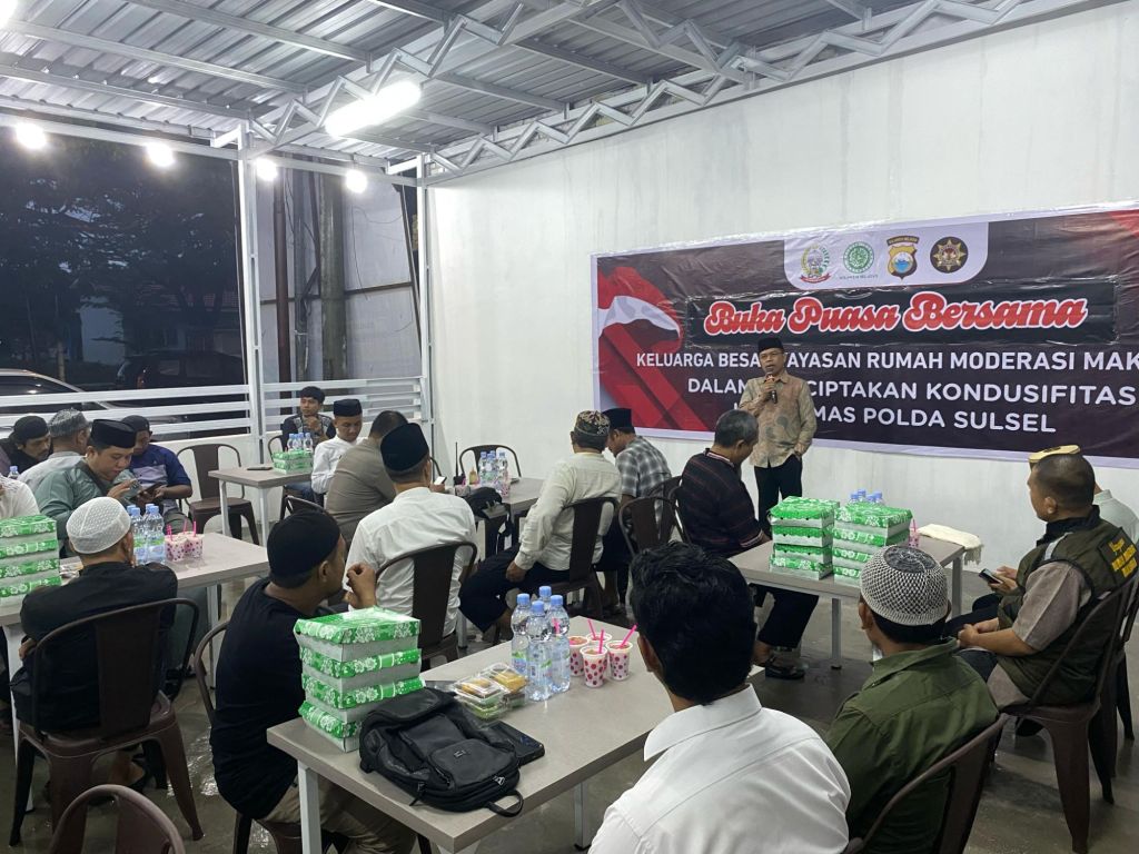 *Buka Puasa Bersama Yayasan Rumah Moderasi Makassar: Perkuat Silaturahmi dan Moderasi Beragama*Yayasan Rumah Moderasi Makassar menggelar acara buka puasa bersama di sekretariat yayasan yang berlokasi di Jl. Piere Tendean, Kelurahan Ujung Pandang Baru, Kecamatan Tallo, Kota Makassar. Acara ini dihadiri oleh para eks narapidana terorisme (napiter) beserta keluarga mereka, serta sejumlah tokoh kepolisian dan akademisi yang turut berpartisipasi dalam mempererat silaturahmi dan menyebarkan pesan moderasi beragama.Turut hadir dalam kegiatan tersebut antara lain Kompol Soffan Ansyari, SH (Plh Kasatgaswil Sulsel Densus 88 Anti Teror Polri), Kompol Asdar, S.Sos (Kanit 3 Subdit Kamneg Ditintelkam Polda Sulsel), Kompol H. Syamsuardi, S.Sos., MH (Kapolsek Tallo), Iptu A. Syarif Alqadri AR, SH (Da’i Polri), serta DR. Usman Sofian, MA (Sekretaris FKUB Kota Makassar). Kehadiran para pemangku kepentingan ini menjadi simbol pentingnya sinergi antara aparat keamanan, tokoh agama, dan masyarakat dalam menjaga keharmonisan sosial.Pembukaan oleh Ketua Yayasan Rumah Moderasi Makassar, Ustadz Suryadi Mas’ud. Dalam sambutannya, ia menyampaikan bahwa meskipun di luar masih ada anggapan “Indonesia Gelap”, Yayasan Rumah Moderasi Makassar ingin membawa semangat “Indonesia Terang” dengan menghadirkan program-program positif bagi para eks napiter. Ia juga mengumumkan rencana pembukaan Rumah Kuliner Yayasan Rumah Moderasi Makassar yang akan beroperasi 24 jam pasca-Ramadhan.Selanjutnya, Kapolsek Tallo, Kompol H. Syamsuardi, S.Sos., MH, memberikan sepatah kata mengenai pentingnya semangat dalam menjalani kehidupan. Ia mengingat kembali perkenalannya dengan Ustadz Suryadi Mas’ud saat baru bebas dari lapas dan menyampaikan kebahagiaannya karena sekretariat Yayasan Rumah Moderasi Makassar berada di wilayah Polsek Tallo. Ia juga mengajak seluruh hadirin untuk menjaga keamanan dan ketertiban masyarakat (kamtibmas) menjelang Hari Raya Idul Fitri 1445 H.ceramah singkat disampaikan oleh Da’i Polri, Iptu A. Syarif Alqadri AR, SH. Dalam ceramahnya, ia menegaskan bahwa Islam adalah agama yang moderat dan perdamaian hanya dapat tercipta jika ada harmoni antaragama. Ia berharap Yayasan Rumah Moderasi Makassar dapat menjadi mitra dalam pencegahan radikalisme dan terorisme, serta menanamkan kelembutan dalam kehidupan sehari-hari agar keberkahan selalu menyertai.Sekretaris FKUB Kota Makassar, DR. Usman Sofian, MA, juga memberikan pesan kebersamaan. Ia menekankan bahwa buka puasa bersama ini adalah momentum untuk mempererat silaturahmi dan mengingatkan bahwa manusia tidak ada yang sempurna. Ia juga menegaskan pentingnya menunjukkan rasa nyaman terhadap keberadaan satu sama lain tanpa perlu memperlihatkan perbedaan agama.