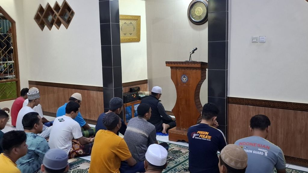 *Kapolres Soppeng Laksanakan Salat Isya Berjamaah di Masjid Rutan Kelas IIB Soppeng, Wujud Kepedulian Spiritual bagi Warga Binaan*Kapolres Soppeng AKBP Aditya Pradana,S.I.K.,M.I.K. melaksanakan salat Isya berjamaah bersama warga binaan di Masjid Rutan Kelas IIB Soppeng, Jalan Pengayoman, Senin malam, 07 Juli 2025. Kegiatan ini menjadi bagian dari pendekatan humanis Polri dalam membina hubungan spiritual dan sosial dengan masyarakat, khususnya para warga binaan.Kehadiran Kapolres Soppeng disambut hangat oleh Kepala Rutan Kelas IIB Soppeng beserta jajaran, serta para warga binaan yang antusias mengikuti ibadah berjamaah tersebut. Suasana religius dan khidmat terasa saat salat berlangsung, menciptakan nuansa yang penuh kekhusyukan di dalam lingkungan rutan.Dalam kesempatan tersebut, Kapolres Soppeng juga menyampaikan pesan-pesan moral dan motivasi kepada warga binaan. Ia mengajak mereka untuk menjadikan masa pembinaan sebagai momen refleksi diri dan memperkuat keimanan.”Salat berjamaah ini bukan hanya bentuk ibadah, tetapi juga simbol kebersamaan dan harapan. Kami hadir di sini untuk memberikan semangat bahwa setiap orang berhak mendapatkan kesempatan untuk berubah menjadi lebih baik,” ujar AKBP Aditya.Ia juga menekankan pentingnya menjaga akhlak, saling menghormati antar sesama, serta tidak kehilangan harapan untuk masa depan yang lebih baik.Kegiatan ini sekaligus menjadi bentuk sinergi antara Polres Soppeng dan Rutan Kelas IIB Soppeng dalam menciptakan pembinaan kepribadian warga binaan yang berbasis nilai-nilai spiritual, serta memperkuat peran kepolisian dalam pembinaan masyarakat melalui pendekatan keagamaan.Dengan langkah-langkah seperti ini, Polres Soppeng terus menunjukkan komitmennya sebagai pelindung, pengayom, dan pelayan masyarakat yang tidak hanya menegakkan hukum, tetapi juga membangun nilai-nilai kemanusiaan.